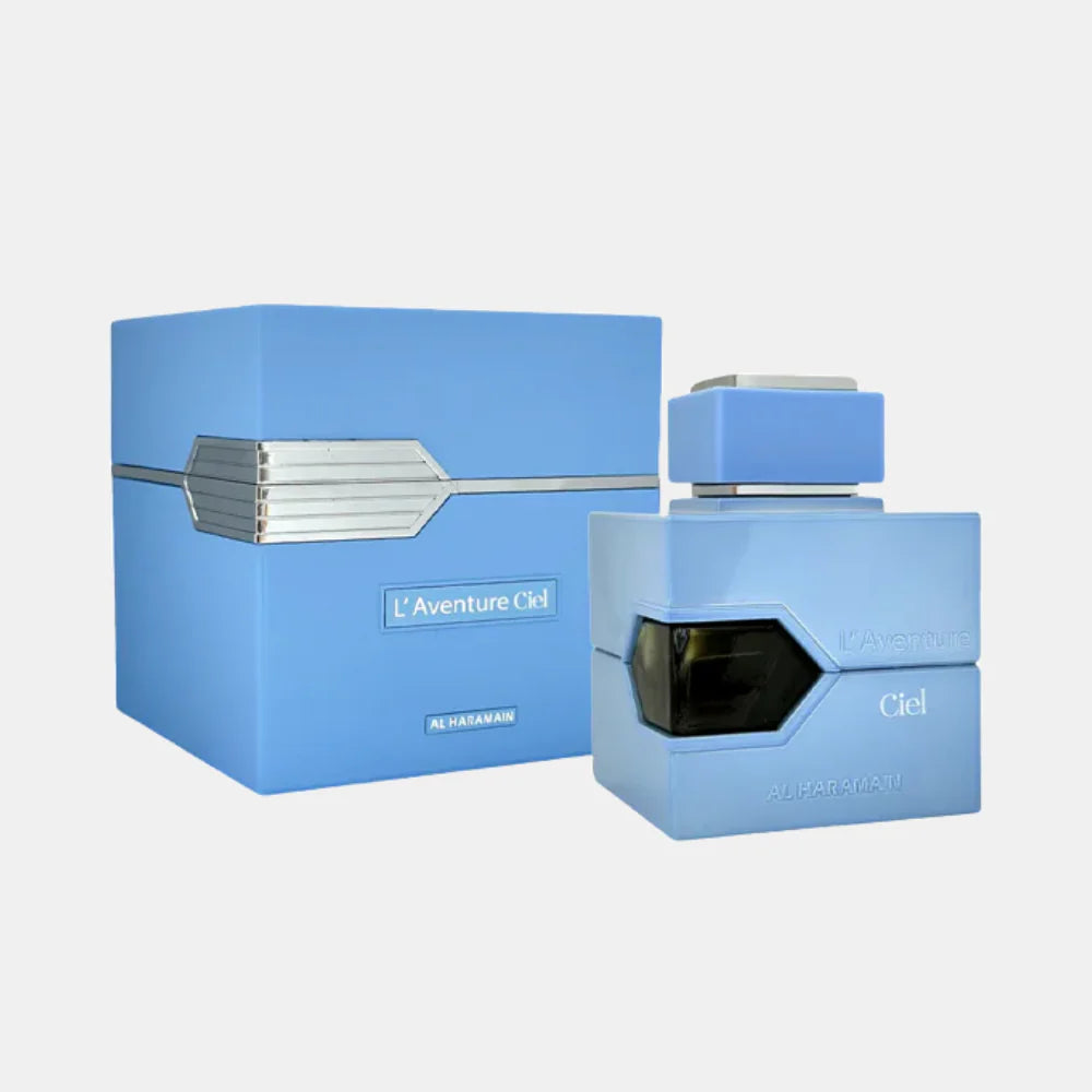 Al Haramain L'Aventure Ciel Eau de Parfum es una fragancia unisex cítrica y fresca, ideal para el día a día, trabajo o deporte en climas cálidos como primavera y verano. Con notas de bergamota y limón, un corazón verde de té y jengibre, y un fondo cálido de almizcle y cedro, es una esencia ligera y versátil.