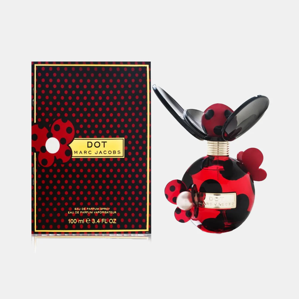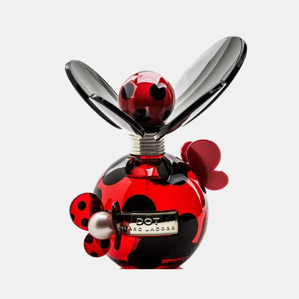 Marc Jacobs Dot es un perfume que huele a flores y frutas dulces. Es perfecto para usar todos los días, especialmente en primavera y verano. Al principio, huele a mora, pera roja y flor de madreselva. Luego, se siente el aroma de flor de azahar, jazmín y coco. Al final, deja un olor suave a vainilla, madera y almizcle. Es ideal para mujeres que buscan un aroma alegre y dulce.